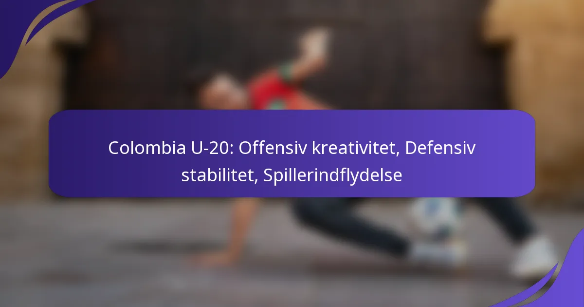 Den offensive kreativitet i Colombia U-20-holdet er kendetegnet ved deres dynamiske angrebsstrategier, flydende formationer og de indflydelsesrige roller for individuelle spillere. Denne kombination gør det muligt for dem at generere scoringsmuligheder og opretholde pres på modstanderens forsvar gennem kampene.