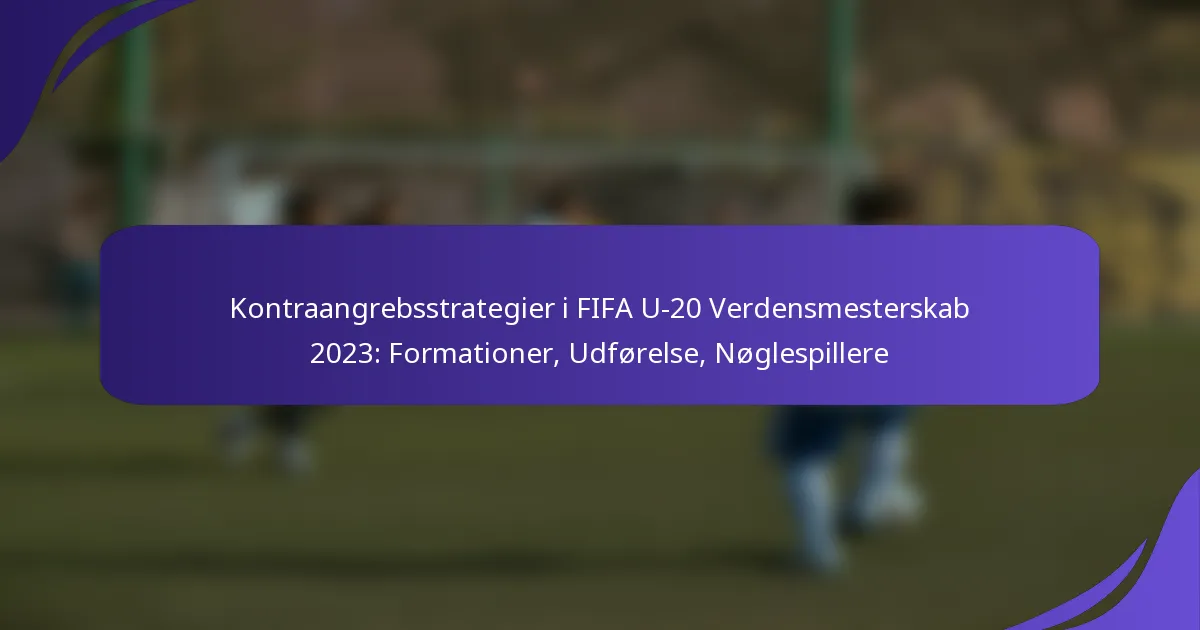 Kontraangrebsstrategier i FIFA U-20 Verdensmesterskabet 2023 understreger hurtige overgange fra forsvar til angreb, hvilket giver hold mulighed for at udnytte deres modstanderes svagheder. Ved at anvende formationer som 4-3-3 og 3-5-2 kan hold maksimere deres angrebspotentiale, samtidig med at de sikrer defensiv stabilitet. Nøglespillere spiller en afgørende rolle i udførelsen af disse strategier gennem hurtig bevægelse, præcise afleveringer og strategisk positionering.