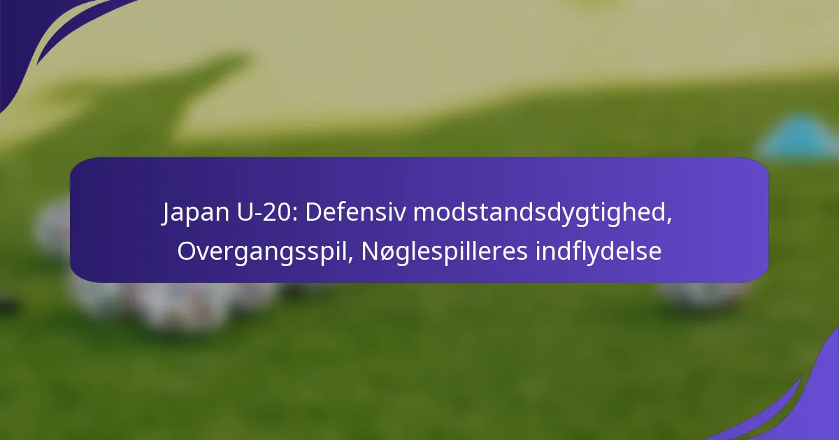 Japan U-20-holdet viser imponerende defensiv modstandskraft og effektivt overgangsspil, hvilket gør dem til en udfordrende modstander. Deres strukturerede formationer gør det muligt for dem at absorbere pres, mens de hurtigt skifter til kontraangreb og udnytter huller i modstanderens forsvar. Nøglespillere på holdet har en betydelig indflydelse på deres præstation, idet de forbedrer både individuelle og kollektive dynamikker gennem deres færdigheder og strategiske bidrag.