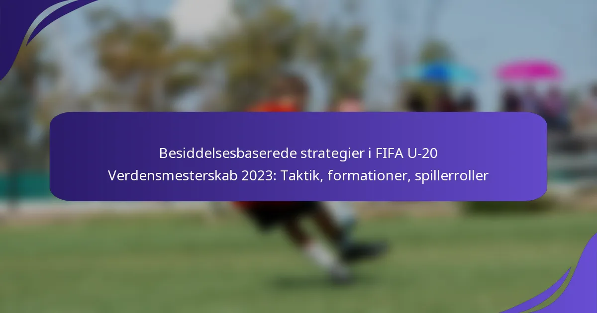Besiddelsesbaserede strategier i FIFA U-20 Verdensmesterskabet 2023 fokuserer på at opretholde kontrol over bolden for at skabe scoringsmuligheder, samtidig med at risici minimeres. Disse taktikker lægger vægt på korte afleveringer, bevægelse uden bold og strategisk positionering for at dominere spillet og diktere kampens tempo.