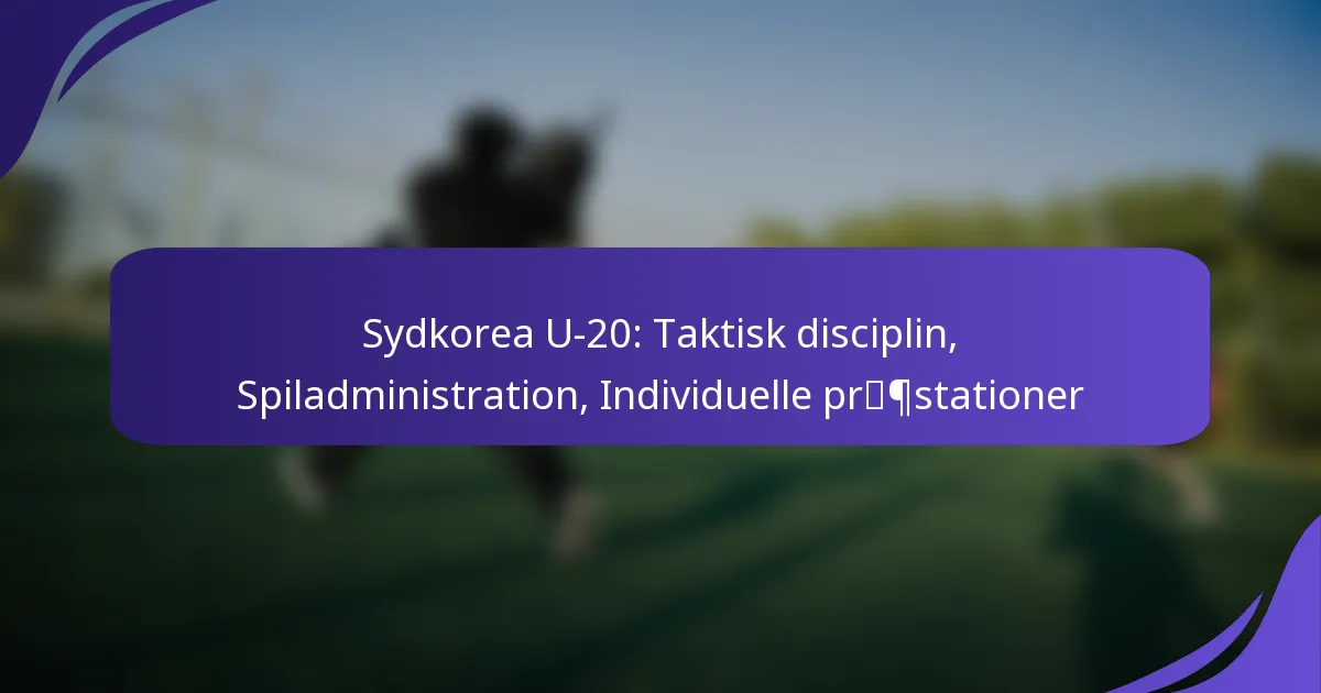Den taktiske disciplin i det sydkoreanske U-20 hold er kendetegnet ved strukturerede formationer, klare spillerroller og effektiv spilledelse. Denne disciplin forbedrer deres evne til at udføre strategier, der maksimerer præstation og tilpasningsevne under kampe.