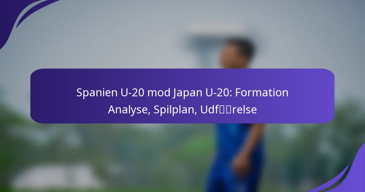 Spanien U-20 anvender typisk en 4-3-3 formation, der lægger vægt på boldbesiddelse og offensivt spil, mens Japan U-20 ofte benytter en 4-2-3-1 opsætning, der fokuserer på hurtige omstillinger og defensiv stabilitet. Disse formationer afspejler hver teams taktiske filosofi og styrker på banen.
